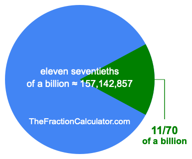 Therefore, 11/70 of a billion is the quotient of one billion divided by 70, multiplied by 11. Here is the math and the answer: