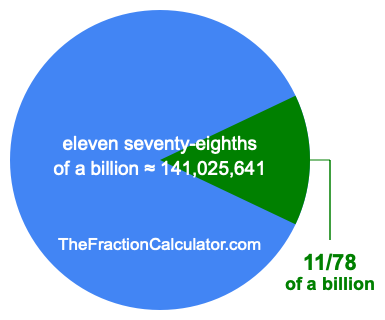 Therefore, 11/78 of a billion is the quotient of one billion divided by 78, multiplied by 11. Here is the math and the answer: