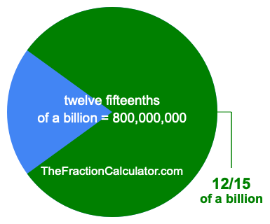Therefore, 12/15 of a billion is the quotient of one billion divided by 15, multiplied by 12. Here is the math and the answer: