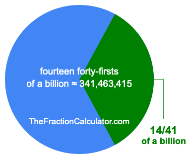 If you want to calculate 14/41 of a billion (fourteen forty-firsts of a billion), then you want to divide one billion (1,000,000,000) into 41 equal pieces and calculate the sum of 14 of those pieces.