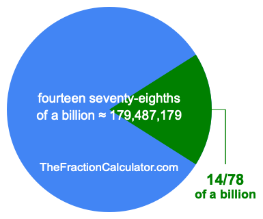Therefore, 14/78 of a billion is the quotient of one billion divided by 78, multiplied by 14. Here is the math and the answer: