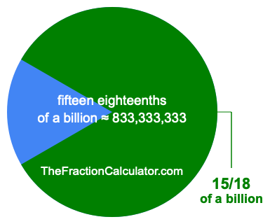 Therefore, 15/18 of a billion is the quotient of one billion divided by 18, multiplied by 15. Here is the math and the answer: