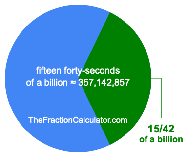 Therefore, 15/42 of a billion is the quotient of one billion divided by 42, multiplied by 15. Here is the math and the answer: