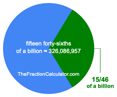 Therefore, 15/46 of a billion is the quotient of one billion divided by 46, multiplied by 15. Here is the math and the answer: