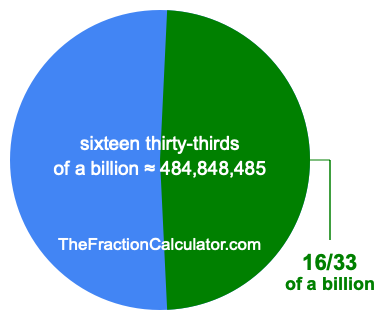 If you want to calculate 16/33 of a billion (sixteen thirty-thirds of a billion), then you want to divide one billion (1,000,000,000) into 33 equal pieces and calculate the sum of 16 of those pieces.