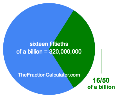 If you want to calculate 16/50 of a billion (sixteen fiftieths of a billion), then you want to divide one billion (1,000,000,000) into 50 equal pieces and calculate the sum of 16 of those pieces.