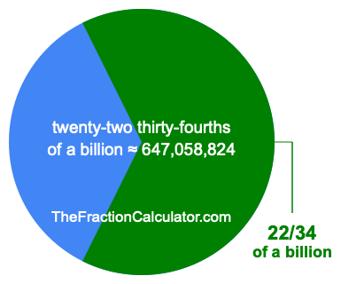 If you want to calculate 22/34 of a billion (twenty-two thirty-fourths of a billion), then you want to divide one billion (1,000,000,000) into 34 equal pieces and calculate the sum of 22 of those pieces.