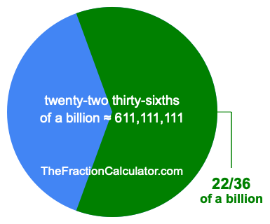 If you want to calculate 22/36 of a billion (twenty-two thirty-sixths of a billion), then you want to divide one billion (1,000,000,000) into 36 equal pieces and calculate the sum of 22 of those pieces.