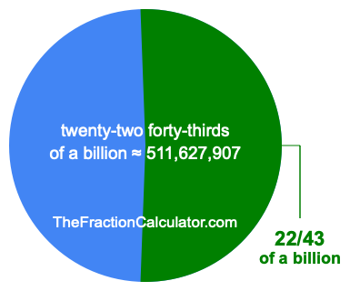 Therefore, 22/43 of a billion is the quotient of one billion divided by 43, multiplied by 22. Here is the math and the answer: