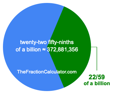 Therefore, 22/59 of a billion is the quotient of one billion divided by 59, multiplied by 22. Here is the math and the answer: