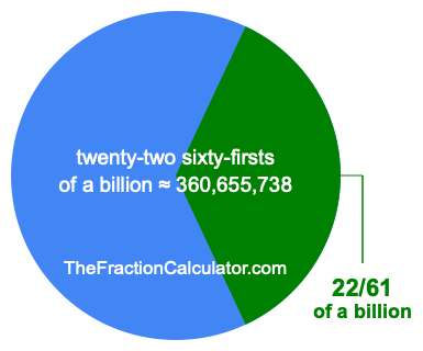 If you want to calculate 22/61 of a billion (twenty-two sixty-firsts of a billion), then you want to divide one billion (1,000,000,000) into 61 equal pieces and calculate the sum of 22 of those pieces.