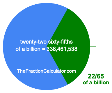 Therefore, 22/65 of a billion is the quotient of one billion divided by 65, multiplied by 22. Here is the math and the answer: