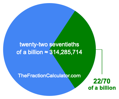 If you want to calculate 22/70 of a billion (twenty-two seventieths of a billion), then you want to divide one billion (1,000,000,000) into 70 equal pieces and calculate the sum of 22 of those pieces.