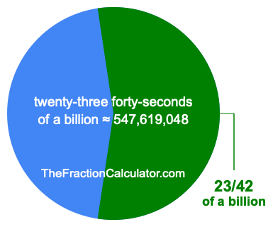 Here we will explain and illustrate how to calculate 23/42 of a billion. In other words, you will learn how to answer the question, "What is twenty-three forty-seconds of a billion?"
