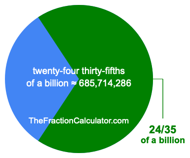 Therefore, 24/35 of a billion is the quotient of one billion divided by 35, multiplied by 24. Here is the math and the answer: