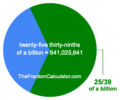 Therefore, 25/39 of a billion is the quotient of one billion divided by 39, multiplied by 25. Here is the math and the answer: