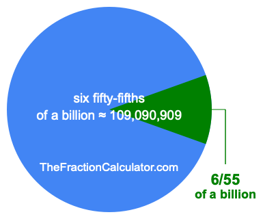 Therefore, 6/55 of a billion is the quotient of one billion divided by 55, multiplied by 6. Here is the math and the answer: