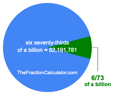 Therefore, 6/73 of a billion is the quotient of one billion divided by 73, multiplied by 6. Here is the math and the answer: