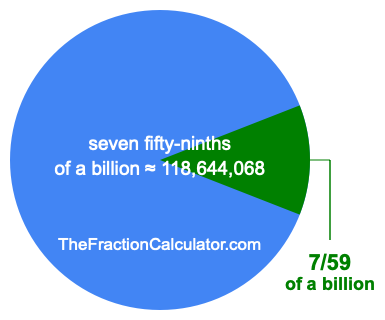 Therefore, 7/59 of a billion is the quotient of one billion divided by 59, multiplied by 7. Here is the math and the answer: