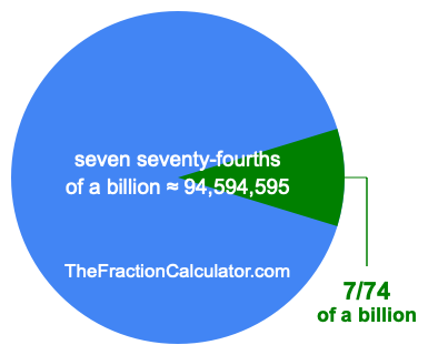 Therefore, 7/74 of a billion is the quotient of one billion divided by 74, multiplied by 7. Here is the math and the answer: