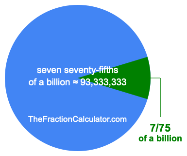 Therefore, 7/75 of a billion is the quotient of one billion divided by 75, multiplied by 7. Here is the math and the answer:
