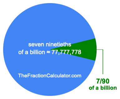 Therefore, 7/90 of a billion is the quotient of one billion divided by 90, multiplied by 7. Here is the math and the answer: