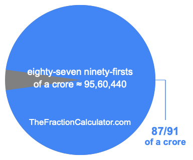 If you want to calculate 87/91 of a crore (eighty-seven ninety-firsts of a crore), then you want to divide one crore (1,00,00,000) into 91 equal pieces and calculate the sum of 87 of those pieces.