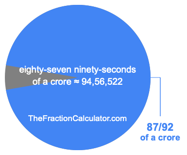 If you want to calculate 87/92 of a crore (eighty-seven ninety-seconds of a crore), then you want to divide one crore (1,00,00,000) into 92 equal pieces and calculate the sum of 87 of those pieces.