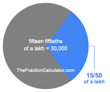 If you want to calculate 15/50 of a lakh (fifteen fiftieths of a lakh), then you want to divide one lakh (1,00,000) into 50 equal pieces and calculate the sum of 15 of those pieces.