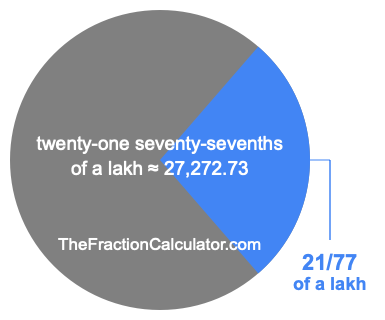 If you want to calculate 21/77 of a lakh (twenty-one seventy-sevenths of a lakh), then you want to divide one lakh (1,00,000) into 77 equal pieces and calculate the sum of 21 of those pieces.