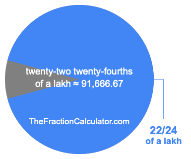 If you want to calculate 22/24 of a lakh (twenty-two twenty-fourths of a lakh), then you want to divide one lakh (1,00,000) into 24 equal pieces and calculate the sum of 22 of those pieces.