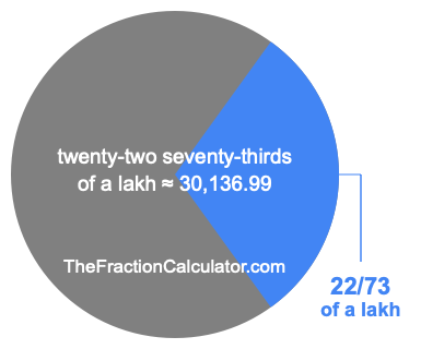 If you want to calculate 22/73 of a lakh (twenty-two seventy-thirds of a lakh), then you want to divide one lakh (1,00,000) into 73 equal pieces and calculate the sum of 22 of those pieces.