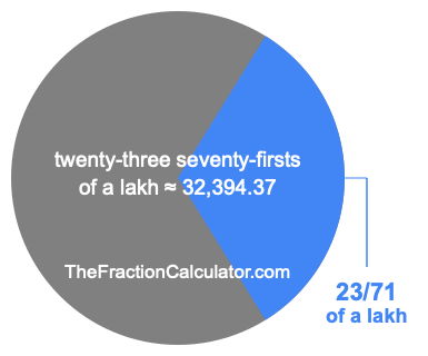 If you want to calculate 23/71 of a lakh (twenty-three seventy-firsts of a lakh), then you want to divide one lakh (1,00,000) into 71 equal pieces and calculate the sum of 23 of those pieces.