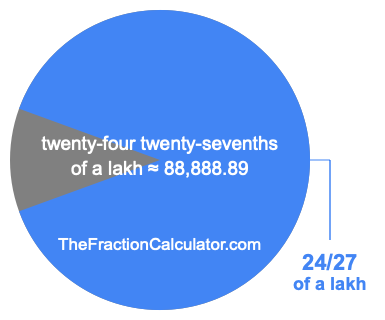 If you want to calculate 24/27 of a lakh (twenty-four twenty-sevenths of a lakh), then you want to divide one lakh (1,00,000) into 27 equal pieces and calculate the sum of 24 of those pieces.