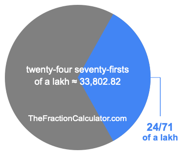 If you want to calculate 24/71 of a lakh (twenty-four seventy-firsts of a lakh), then you want to divide one lakh (1,00,000) into 71 equal pieces and calculate the sum of 24 of those pieces.