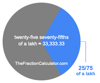 If you want to calculate 25/75 of a lakh (twenty-five seventy-fifths of a lakh), then you want to divide one lakh (1,00,000) into 75 equal pieces and calculate the sum of 25 of those pieces.