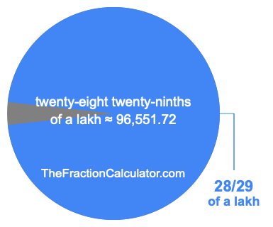 If you want to calculate 28/29 of a lakh (twenty-eight twenty-ninths of a lakh), then you want to divide one lakh (1,00,000) into 29 equal pieces and calculate the sum of 28 of those pieces.