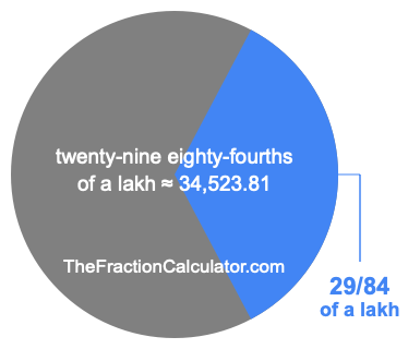 If you want to calculate 29/84 of a lakh (twenty-nine eighty-fourths of a lakh), then you want to divide one lakh (1,00,000) into 84 equal pieces and calculate the sum of 29 of those pieces.