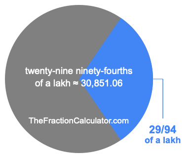 If you want to calculate 29/94 of a lakh (twenty-nine ninety-fourths of a lakh), then you want to divide one lakh (1,00,000) into 94 equal pieces and calculate the sum of 29 of those pieces.