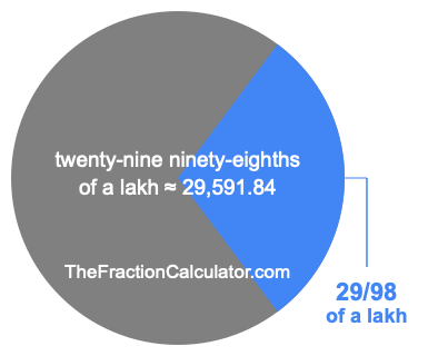 We also created the image below to give you a better understanding of what twenty-nine ninety-eighths of a lakh looks like.