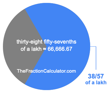 If you want to calculate 38/57 of a lakh (thirty-eight fifty-sevenths of a lakh), then you want to divide one lakh (1,00,000) into 57 equal pieces and calculate the sum of 38 of those pieces.