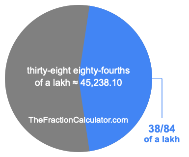 If you want to calculate 38/84 of a lakh (thirty-eight eighty-fourths of a lakh), then you want to divide one lakh (1,00,000) into 84 equal pieces and calculate the sum of 38 of those pieces.