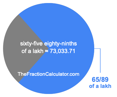 If you want to calculate 65/89 of a lakh (sixty-five eighty-ninths of a lakh), then you want to divide one lakh (1,00,000) into 89 equal pieces and calculate the sum of 65 of those pieces.