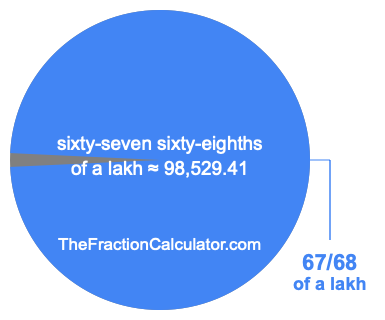 If you want to calculate 67/68 of a lakh (sixty-seven sixty-eighths of a lakh), then you want to divide one lakh (1,00,000) into 68 equal pieces and calculate the sum of 67 of those pieces.
