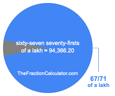 If you want to calculate 67/71 of a lakh (sixty-seven seventy-firsts of a lakh), then you want to divide one lakh (1,00,000) into 71 equal pieces and calculate the sum of 67 of those pieces.