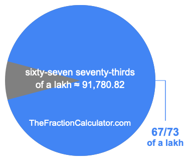 If you want to calculate 67/73 of a lakh (sixty-seven seventy-thirds of a lakh), then you want to divide one lakh (1,00,000) into 73 equal pieces and calculate the sum of 67 of those pieces.