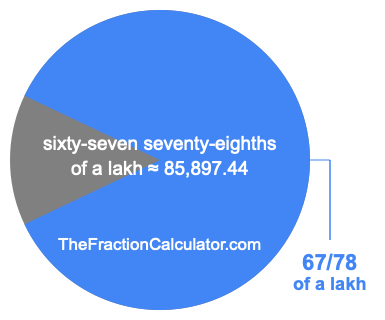 If you want to calculate 67/78 of a lakh (sixty-seven seventy-eighths of a lakh), then you want to divide one lakh (1,00,000) into 78 equal pieces and calculate the sum of 67 of those pieces.