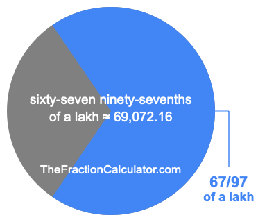 If you want to calculate 67/97 of a lakh (sixty-seven ninety-sevenths of a lakh), then you want to divide one lakh (1,00,000) into 97 equal pieces and calculate the sum of 67 of those pieces.