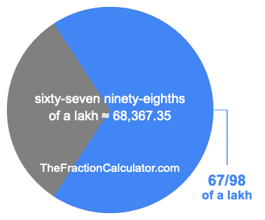 If you want to calculate 67/98 of a lakh (sixty-seven ninety-eighths of a lakh), then you want to divide one lakh (1,00,000) into 98 equal pieces and calculate the sum of 67 of those pieces.