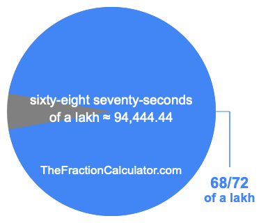If you want to calculate 68/72 of a lakh (sixty-eight seventy-seconds of a lakh), then you want to divide one lakh (1,00,000) into 72 equal pieces and calculate the sum of 68 of those pieces.